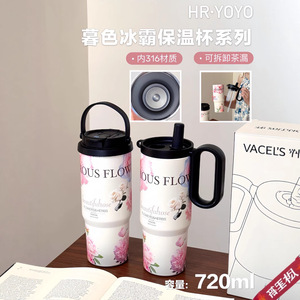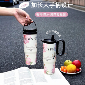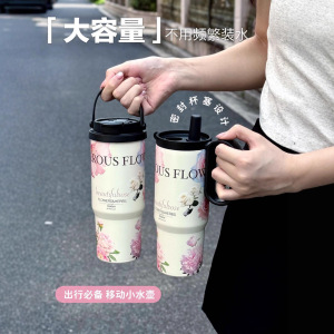 見た目の良い女の子向けのストロー断熱カップ、2025年の新しい軽量高級ウォーターカップ、持ち運びに便利な大容量のコーヒーカップ