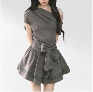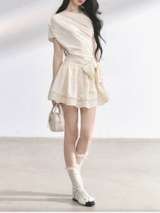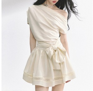 【东京创愈木】 高级感法式露肩连衣裙女夏收腰显瘦蓬蓬裙短裙