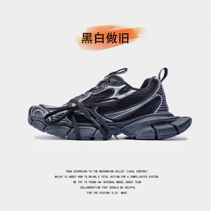 ダメージ加工を施した十代のダッドシューズ マジック ブラック&ホワイト