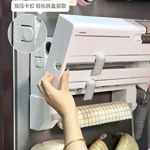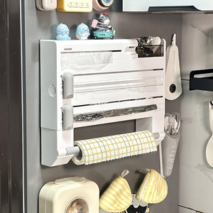 厨房收纳架粘免打孔纸巾置物架保鲜膜锡纸切割器多层功能简约