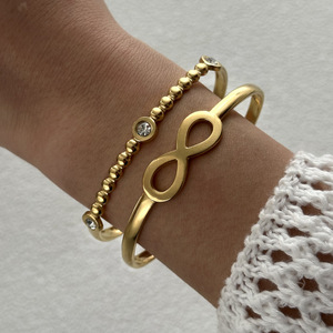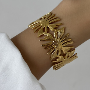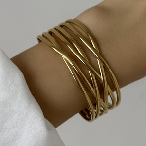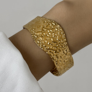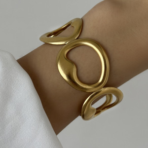 ヨーロッパとアメリカの国境を越えた新しいスタイルのブレスレット、ステンレス鋼、さまざまな多用途のファッショナブルなゴールデン不規則な中空ワイドバージョンの女性用ブレスレット