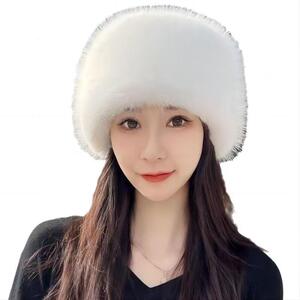 2025冬季新款仿银霜狐帽保暖平顶帽显脸小百搭护耳狐狸毛毛绒帽