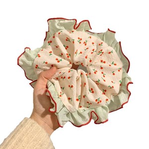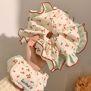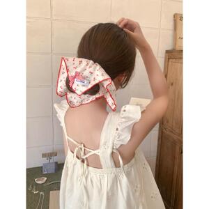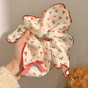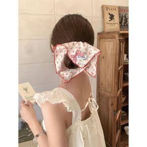 新しい韓国チェリーコントラストレッドチェック柄リボンスクエアスカーフヘアバンドレース甘い気質ハイエンドヘアバンドヘアアクセサリー