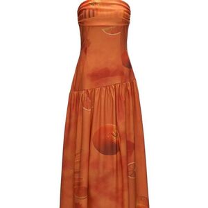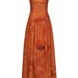 オレンジ休暇チューブトップドレス 2025 夏の新しい気質スリムでハイエンドのオフショルダースカート