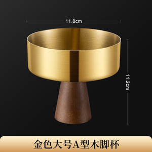 400ML.ゴールド.A型木製フットカップ.ウォールナット色