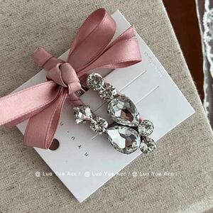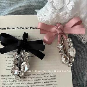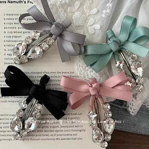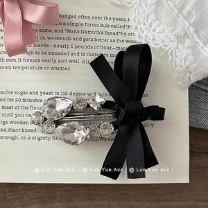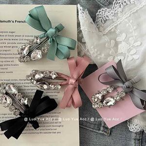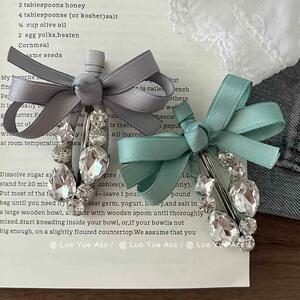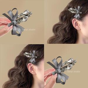 灰色蝴蝶结刘海夹!轻奢BB夹!高级感侧边夹水钻发饰时尚女式发卡