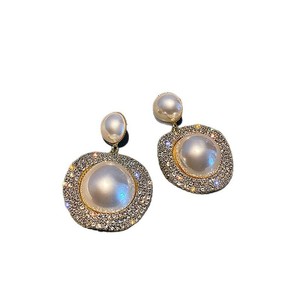 奢侈百搭ins风大珍珠耳环时尚OL个性气质闪钻耳坠新款简约冷淡风