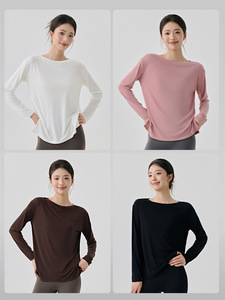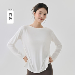 新しい女性用モーダルスポーツブラウス、長袖、両サイドにスリット、ゆったり、通気性、ファッショナブルでハイエンドのヨガウェアブラウス