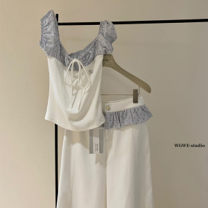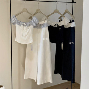 WGWE6137法式小资套装芭蕾风短袖t恤长裤两件套高级感上衣