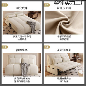 クリームスタイルのスマート電動ソファベッド折りたたみ兼用インターネットセレブモデル多機能シングルとダブルの小さなアパートのリビングルームソファ