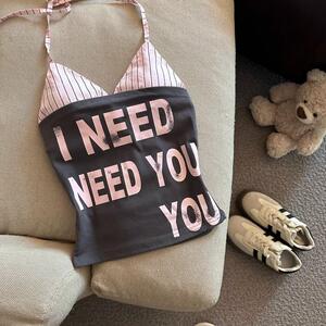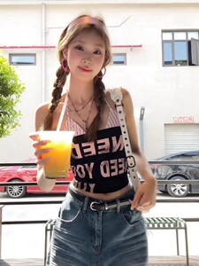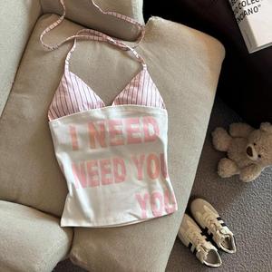 辣妹字母挂胸吊带背心女款两件套度假风修身显瘦2025新品外穿上衣