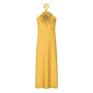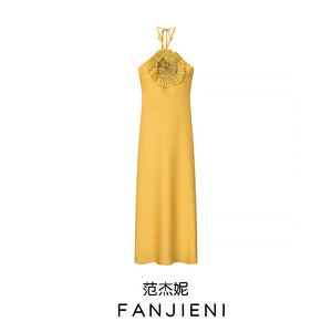 ZR 外国貿易卸売ヨーロッパとアメリカンスタイルの婦人服ファッションニッチデザインダイヤモンドフラワー装飾ホルターネックドレス