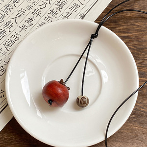 ウッドビーズドングリペンダントワックスロープネックレスレトロエスニックスタイルプルアウトセーターチェーン新中国風多用途ニッチネックレス