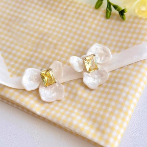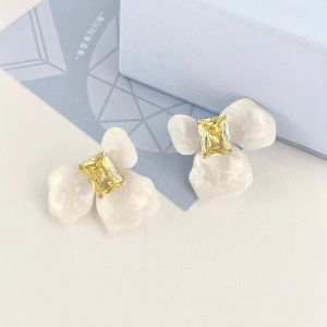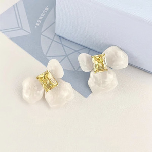 ホワイトアイリスシュガーキューブイヤリング取り外し可能な DIY イヤリングジルコンプレート花かわいい気質小さな新鮮なインスタイル女性