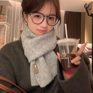 毛线围巾秋冬季小布标氛围感韩版百搭学生保暖披肩冬季针织围脖