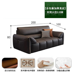 豪华版:三人位:2.2米-【进口全包裹头层真皮+高密度回弹海绵+进口水洗乳胶】