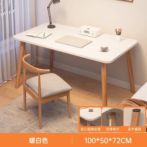 ウォームホワイト 100*50CM|大胆な無垢材のテーブル脚