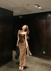 RHGD实拍2025沙丘废土风网纱鱼骨胸衣连衣裙轻礼服