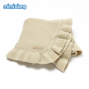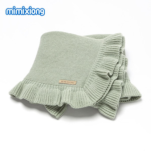 ins热卖春夏季新款宝宝针织纯色荷叶边柔软毯子被盖