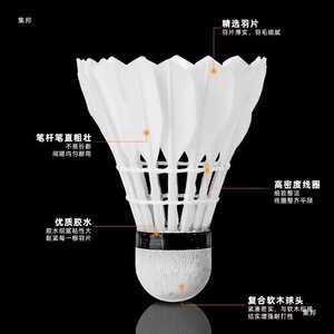 バドミントン耐久性のあるプロの競技トレーニング天然ガチョウの羽のボールは防風性があり、安定していて壊れにくく、プレイ中に消費されます。