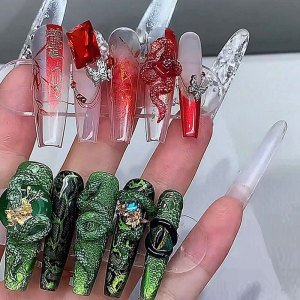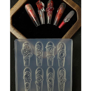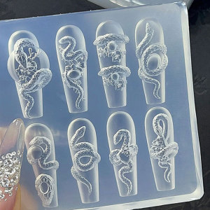 仿真美甲工艺蛇年蛇甲装饰指甲高透硅胶模具DIY滴胶雕花胶模平替