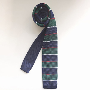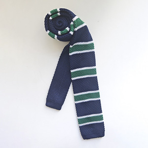 ニットグリーンボトムブルーとホワイトストライプネクタイ-140cm