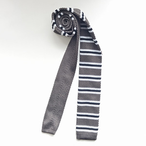 グレー地に黒と白のストライプのニットネクタイ-140cm