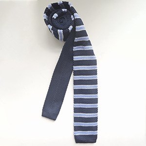 ニットブルー地スカイブルー白ストライプネクタイ-140cm