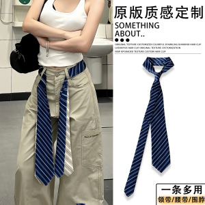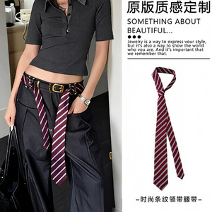 アメリカンレトロ風ウエストストライプネクタイ2025新作ニッチファッション高級感ウエストチェーンセクシーデニムアクセサリー