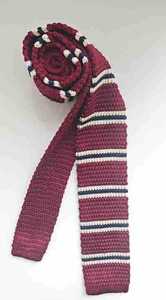 ニット赤地ベージュと黒のストライプネクタイ-140cm