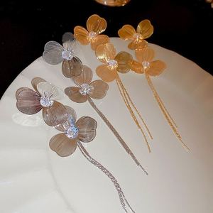 人気の銀針誇張フラワータッセルイヤリング、女性用のエレガントなロングパーソナライズイヤリング、軽い贅沢、ハイエンドのユニークなイヤリング