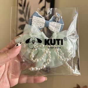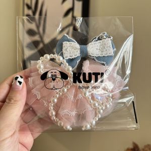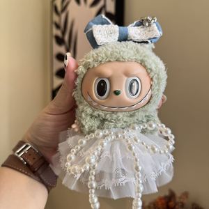 キュートで楽しいラブラブ ライトグリーンのぬいぐるみ風青と白のリボンパールメッシュスカート トレンドのおもちゃ 新しいかわいい