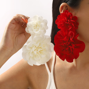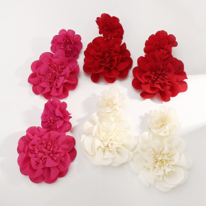E13841 クロスボーダーファッション新しいシフォン大輪の花のイヤリングエレガントな誇張されたキャットウォーク甘いイヤリング