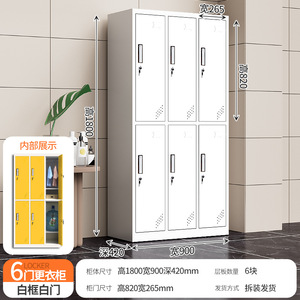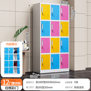 员工彩色落地更衣柜感应锁存包柜美容院储物柜铁皮柜健身房换衣柜