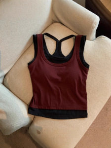 おすすめのベストセラー商品 - アメリカンコントラストカラーフェイクツーピースビューティーバックトップデザインボトムスリムフィットキャミソール