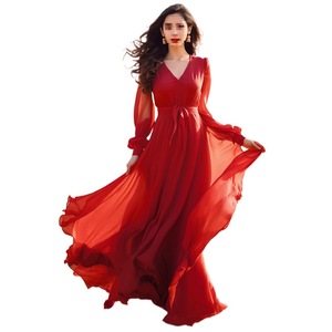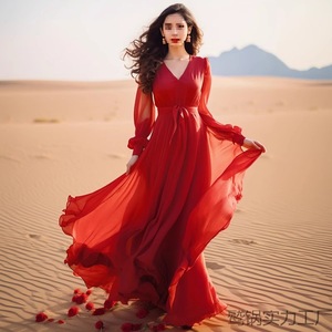 2025新款度假三亚青海湖沙滩裙超仙海边度假连衣裙红色沙漠长裙