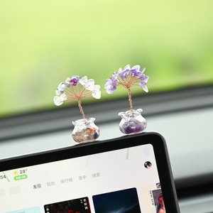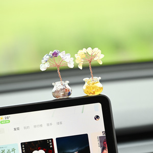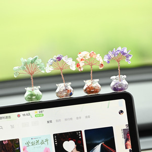 迷你水晶发财树轻奢汽车摆件创意车载装饰汽车用品中控台组合礼物