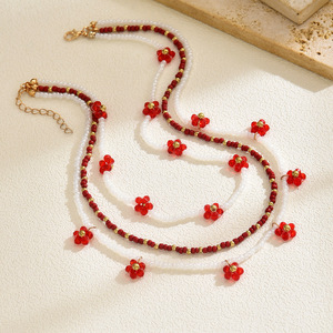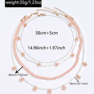 フラワービーズネックレス卸売ヨーロッパとアメリカのクロスボーダー新しい多層ニッチパーソナライズアクセサリー女性のライスビーズネックレス