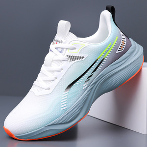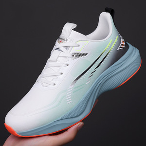 男鞋外贸批发春夏厚底回弹舒适跑步鞋子青少年系带拼色透气运动鞋