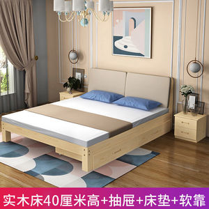 無垢材ベッド 40cm 高さ + 引き出し + マットレス + ソフト背もたれ