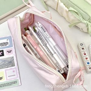 小紅書と同じスタイルのイン高価値クラウドトーストリボンリボン鉛筆バッグ白と緑のカラーマッチング学生鉛筆バッグ