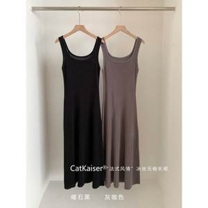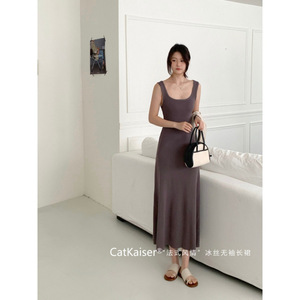 CatKaiser®フレンチスタイルのアイスシルクノースリーブロングドレス