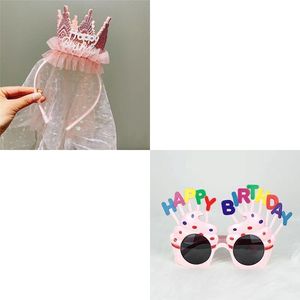生日帽子发箍网纱周岁场景装饰布置女孩公主派对饰品拍照道具氛围