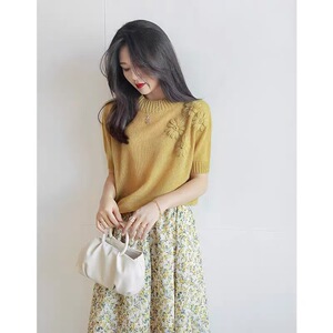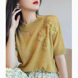 优雅柔和白色立体花朵刺绣针织衫夏季薄款时髦洋气别致上衣女
