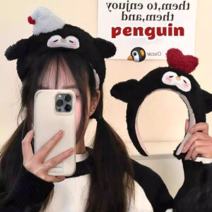 かわいい小さなペンギンぬいぐるみヘッドバンドガーリーハート秋と冬の洗顔ヘアプレスヘッドバンド毛皮のような写真の小道具帽子