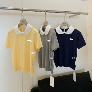 WGWE6264甜美可爱刺绣娃娃领针织夏季新款冰丝薄款设计感短上衣