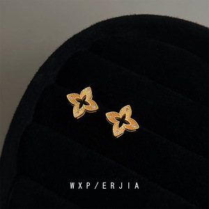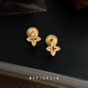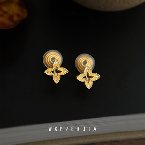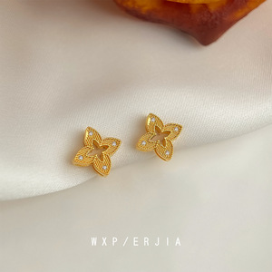 文学的でレトロなマイクロ象嵌ジルコン四つ葉の花蚊取り線香イヤークリップシンプルな気質通勤イヤークリップノンホールピアス女性用