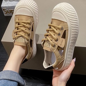 女性のための中空厚底ビスケットシューズ 2023 夏の新しい大きなつま先の高さを高めるスニーカー通気性と多用途のカジュアルな白い靴