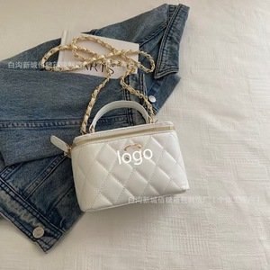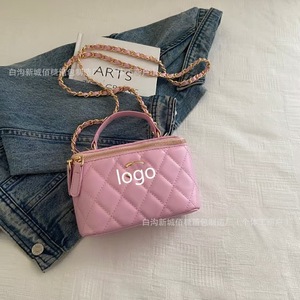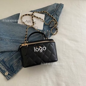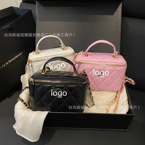 2025夏季小香风菱格手提包单肩斜挎链条包盒子小方包化妆口红包女