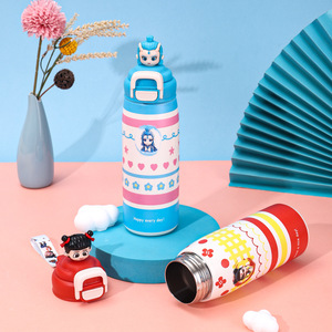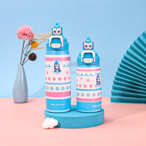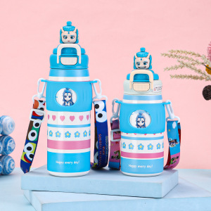 新款小哪吒图案保温杯316不锈钢真空吸管杯带提绳便携儿童水杯